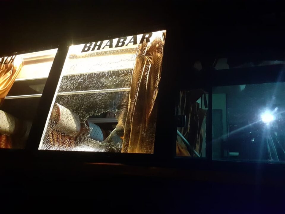 बस पर पथराव, इंदौर से थांदला आ रही थी बस ।