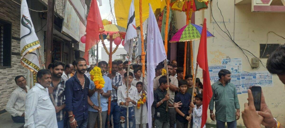 Jhabua : करवड़ से अरुण भोला पाटीदार की रिपोर्ट जिले के ग्राम करवड़ में प्रतिवर्षानुसार इस वर्ष भी तेजा दशमी का पर्व बड़े ही धूमधाम और श्रद्धा के साथ मनाया गया। शुभ मुहूर्त में निशान की पूजा-अर्चना कर यात्रा की शुरुआत की गई। यात्रा ग्राम के मुख्य मार्गों से होती हुई तेजाजी मंदिर पहुंची।